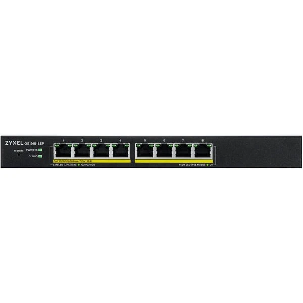 Die GS1915 Serie umfasst zwei Switches mit jeweils acht Ports mit oder ohne PoE. Das PoE-Modell GS1915-8EP unterstützt PoE+ bei seinen acht Ports. Beide Modelle verfügen über nützliche Funktionen und überragende Leistung bei einfachem Plug-and-Play. Die GS1915 Serie unterstützt kostenloses Nebula Cloud Management. Nebula bietet sowohl eine intuitive Web-Oberfläche als auch eine mobile App, um die Installation und Verwaltung Ihres Netzwerks zu vereinfachen ohne zusätzliche Kosten für einen Software- oder Hardware-Controller. Der typische Standalone-Modus steht Ihnen jedoch auch weiterhin zur Verfügung.Art.-Nr.: 1832837